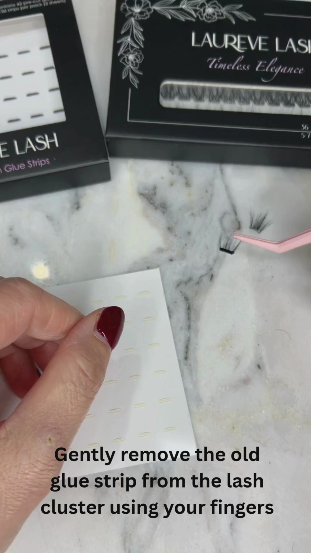 Step 1: Gently remove the old glue strip from the lash cluster using your fingers