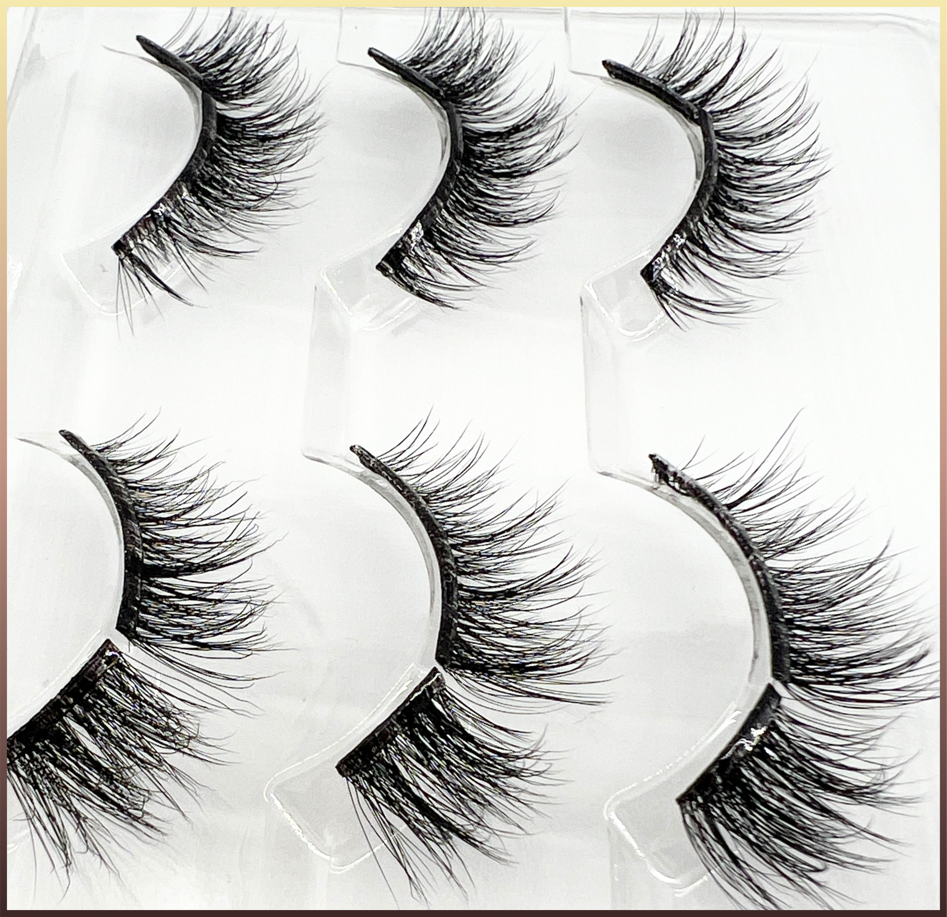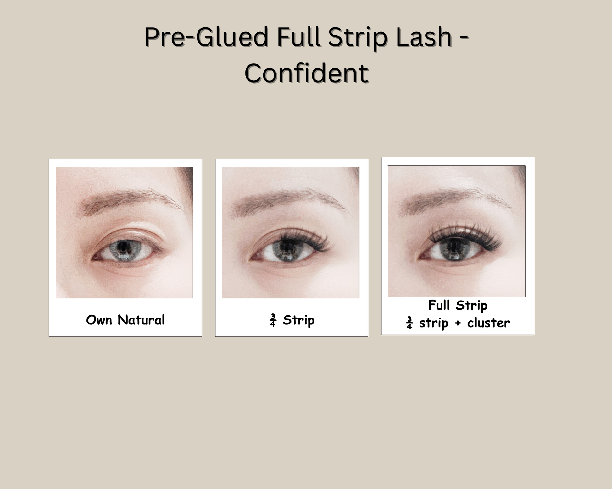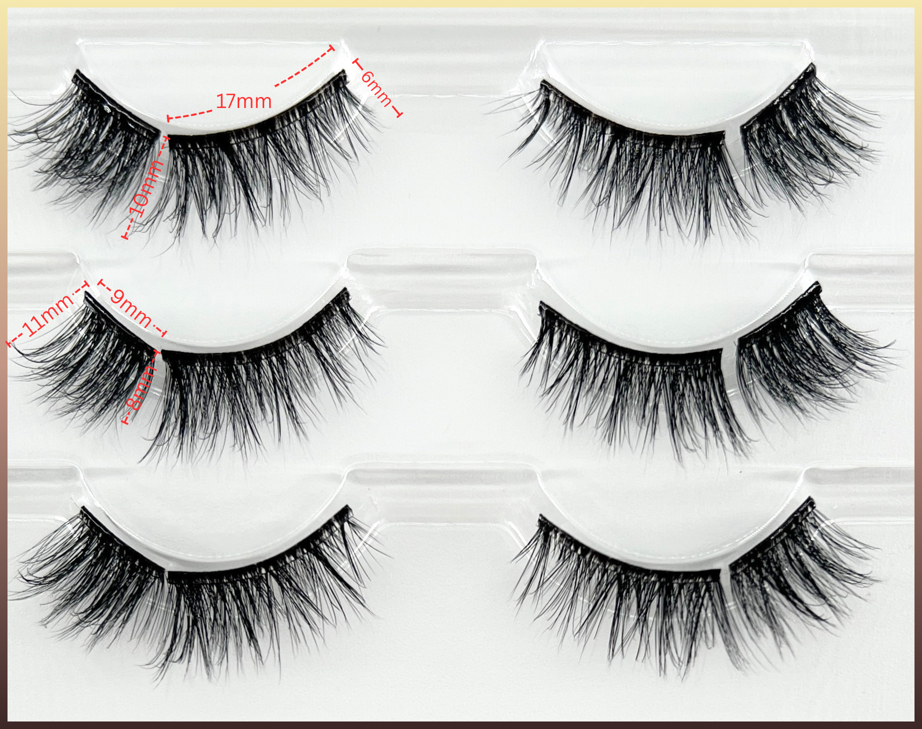 ● 3 pairs of pre-glued strip lashes (¾ strip + ¼ outer cluster per eye)